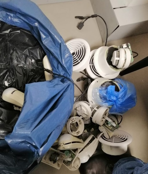 В ГБР отметили, что во время детального осмотра элементов вентиляции и сигнализации установлено, что в них вмонтированы линзы видеокамер и подключены к сетевому кабелю.