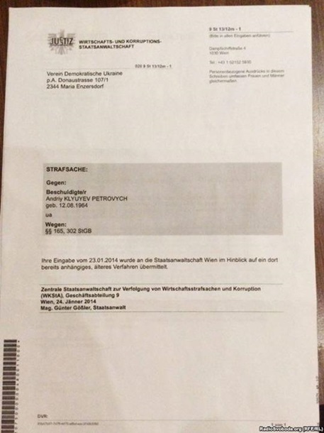 Против главы администрации президента Украины Андрея Клюева в Австрии открыли уголовное дело, сообщает радио Свобода.