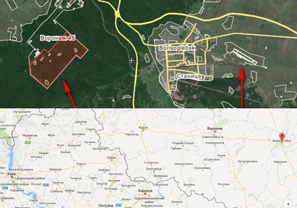 Хранилище ядерного оружия возле Борисоглебска находится по координатам широта 51° 21'47 "N долгота 41° 55'38" E вблизи городов Пески, Урюпинск, Балашов, в примерно 590 милях к востоку от Киева.