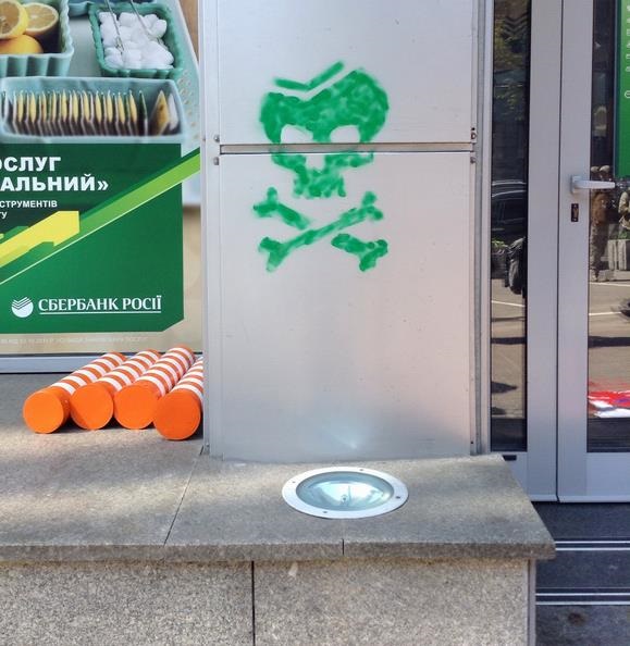 В Киеве облили краской офис Сбербанка России