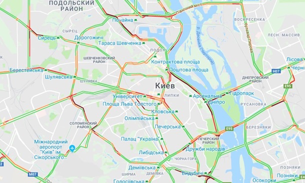 Так, непростая ситуация на Набережном шоссе, ул. Новоконстантиновской, проспекте Степана Бандеры, ул. Елены Телиги, ул. Александра Довженко, проспекте Победы, ул. Борщаговской, проспекте Валерия Лобановского, на Большой Окружной дороге, Голосеевском проспекте, бульварах Тараса Шевченко и Леси Украинки, а также на Крещатике.