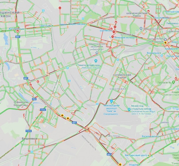 Кроме того, заторы наблюдаются на мосту Метро, Южном мосту, Северном мосту и мосту Патона.