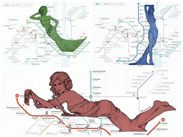 Украинская художница Евгения Лиса решила оживить киевские ветки метро. Вдохновили ее работы Алексея Соболевского, который добавил человечности ветвям московского метро, пишет dreamkyiv.com.