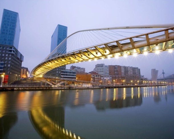 С появлением музея Гуггенхайма в истории Бильбао начался новый этап: город буквально наводнили оригинальные здания и уличные скульптуры, звезда архитектуры Норман Фостер построил здесь стеклянный мост через реку Нервьон, а легендарный Филипп Старк превратил средневековый винный склад в современный арт-центр Alhondiga, в котором сегодня находятся библиотека, кинотеатр, галерея и парочка симпатичных ресторанов.
