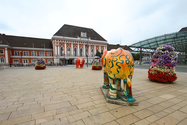 180-тысячный Хамм, где шахты закрылись ещё в 1976-м, сделал ставку на туристов. Город и ловит их… на слонов. Сделав первый шаг на привокзальную площадь, я тут же оказалась в окружении стада слонов, выглядывающих из-за пышных уличных вазонов. Да, они искусственные, китчеватые и слишком яркие — ну и что? Слон улыбается на городском логотипе с девизом Elephantastisch. Экзотика? Это вы ещё Шри-Камадчи-Ампалу не видели — индуистскую святыню с 17-метровой башней, украшенной скульптурами. Когда в 2002 году храм освятили, он был крупнейшим в Европе. В дни праздников тут людно, как в Дели, вокруг волоокие брюнеты и женщины в нарядных сари — чем не Индия, только климат привычнее. Внутрь огромного храма приглашают всех, главное снять обувь.
