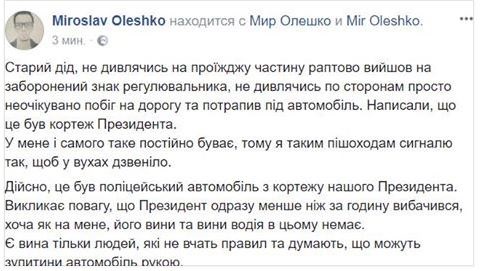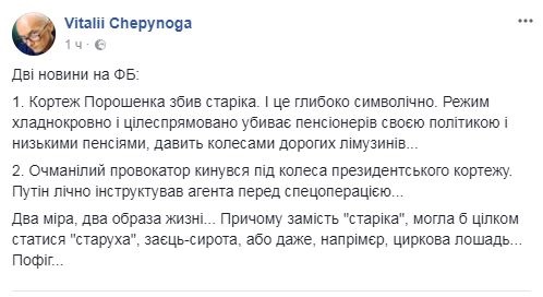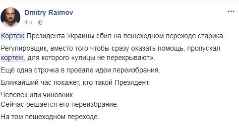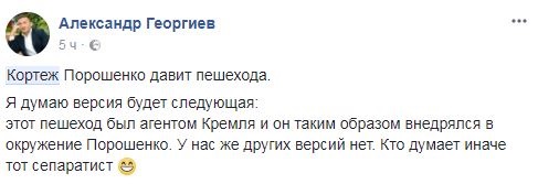 Также украинцы вспомнили, что кортеж бывшего президента Виктора Януковича тоже сбил человека. И советовали Петру Порошенко навестить пострадавшего.