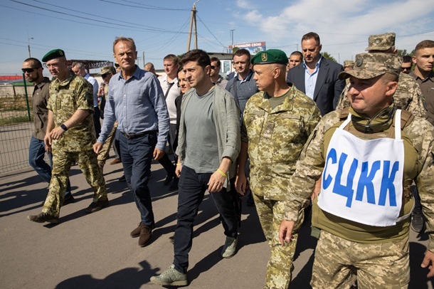 "На КПВВ Станица Луганская генерал-лейтенант Александр Сирский ознакомил Владимира Зеленского и Дональда Туска с текущей ситуацией на этом участке. Также, Президент Украины и Президент Европейского совета пообщались с представителями Специальной мониторинговой миссии ОБСЕ и местными жителями. А также ознакомились с гуманитарными проектами, которые реализуются при поддержке ЕС", - рассказали в штабе ООС.