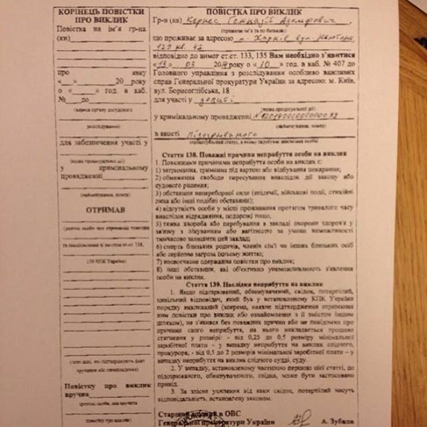Мэр Харькова Геннадий Кернес уже получил повестку на допрос в Службу безопасности в Киеве, соответствующий документ обнародовал харьковский журналист Зураб Аласания.