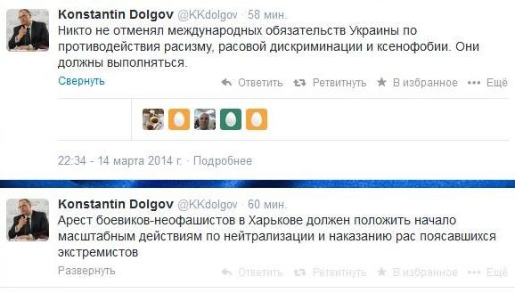 "Никто не отменял международных обязательств Украины по противодействию расизму, расовой дискриминации и ксенофобии. Они должны выполняться", - заявил Долгов в Twitter.