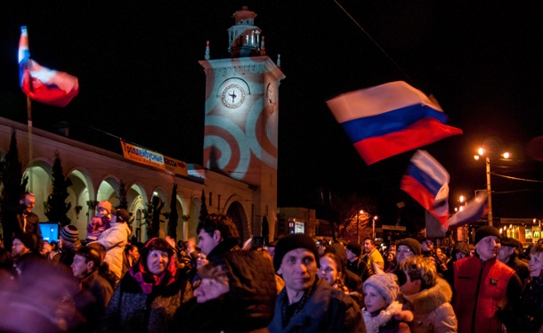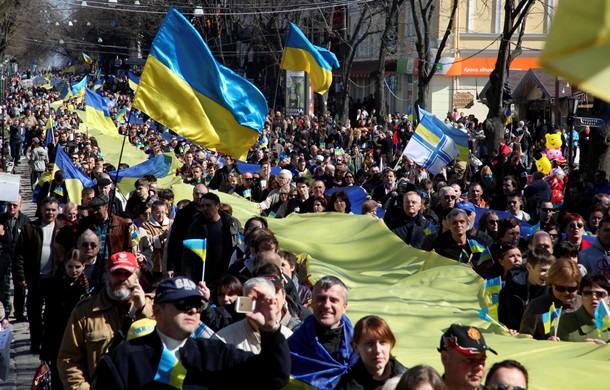 “Шли сразу три колонны. Одна кричит: “Да здравствует Крым!”. Вторая: “За Россию!”. Третья: “Слава Україні!”, — заливаясь смехом, рассказывает о воскресном митинге дежурный экскурсовод городского турбюро Юрий Волокитин. Похожий на Ленина дедушка называет себя нейтральным лицом, а свое участие в митинге объясняет просто: — Кормят и 300 грн. дают”.