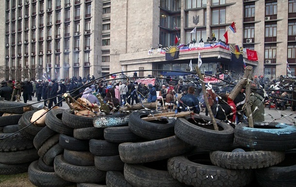В Славянске 12 апреля вооруженные люди в камуфляже захватили местный отдел милиции. По словам правоохранителей, во время захвата напавшими был использован слезоточивый газ. Сообщается, что на здании горотдела вывешен флаг России и Народного ополчения Донбасса. Вокруг здания возводят баррикады из шин, деревянных щитов и мешков с песком.