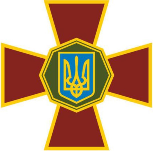 Согласно приложению к указу, эмблемой Национальной гвардии Украины является прямой равносторонний крест с расходящимися концами крапового цвета, в центре которого в восьмиграннике темно-зеленого цвета помещено изображение малого государственного герба Украины.