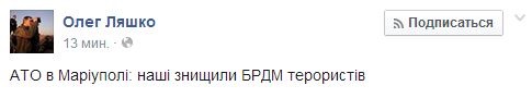 Ляшко также сообщил, что силами подразделений АТО была уничтожена бронированная разведывательно-дозорная машина (БДРМ) террористов.