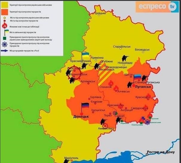 Около 5.30 появилась информация, что в сторону Луганска движется большая колонна боевой техники. Колонна прошла через поселок Хрящеватое со стороны границы с Россией в направлении Луганска.