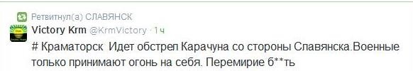 В свою очередь пользователи соцсетей сообщают:"Краматорск. Идет обстрел Карачуна со стороны Славянска. Военные только принимают огонь на себя".