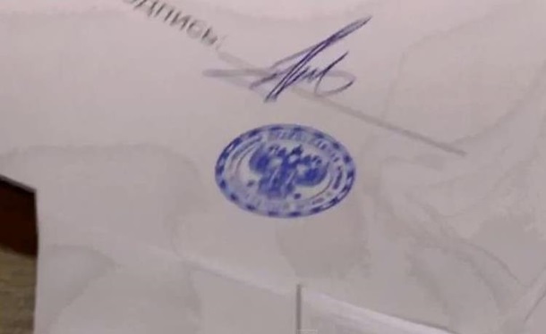 Бойцы подписали текст присяги, после чего на документах были проставлены печати, отличающиеся от известных на данный момент образцов печатей ДНР и ЛНР.