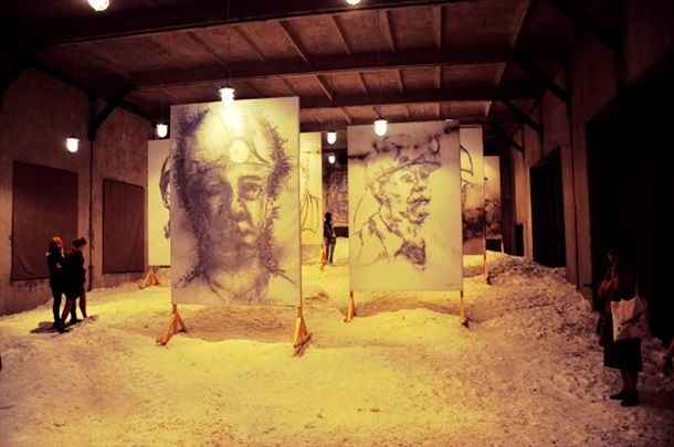 Местные активисты организовывали подобные арт-мероприятия на территории и внутри заброшенного экспериментально-механического завода на Выдубичах, а также на бывшей швейной фабрике Юность возле Андреевского спуска.