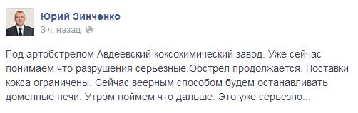 Генеральный директор ПАО ММК им. Ильича Юрий Зинченко на своей странице в Facebook сообщил, что вечером в понедельник, 21 июля, завод в Авдеевке обстреливали.