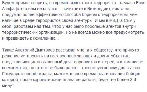 "Мы в МВД, а СБУ у себя, работаем над тем, чтоб у нас было побольше агентов внутри террористических организаций", – написал он.