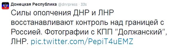 "Силы ополчения ДНР и ЛНР восстанавливают контроль над границей с Россией", - говорится в сообщении.