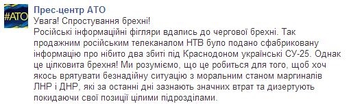 В то же время, в пресс-центре АТО опровергли информацию о сбитых штурмовиках.