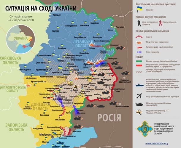 Антитеррористическая операция на Юго-Востоке Украины. Главные события за вторник, 2 сентября.