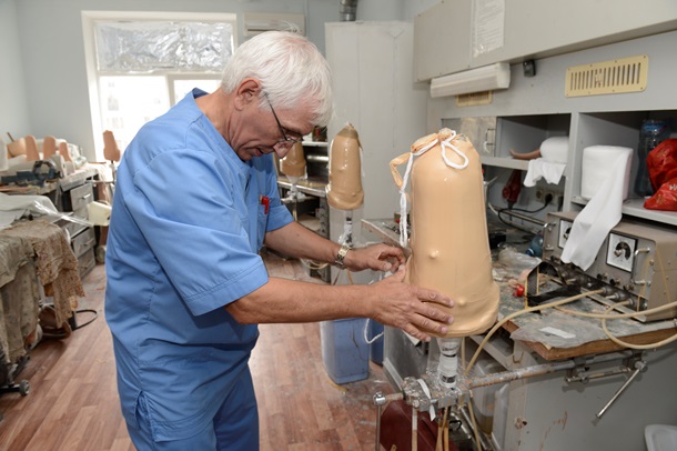 «Во время афганской войны мы буквально поставили на ноги очень многих солдат. Сегодня, похоже, наши услуги опять актуальны», — вздыхает механик-протезист Владимир Фёдоров, заканчивая лепить из акрила очередную стопу.