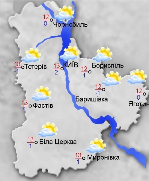 В Киеве и области в пятницу синоптики прогнозируют переменную облачность, без осадков. Ветер ожидается северо-восточный со скоростью 5-10 метров в секунду. Температура воздуха в регионе ночью составит +1…3°С, днем – 9…14°С тепла.