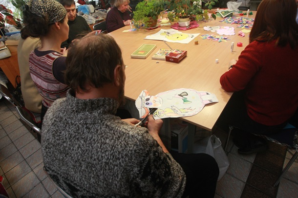 В мастерской Киевской психоневрологической больницы № 1 им. Павлова, в народе просто Павловки, за широким столом пациенты мастерят оригами — рождественские звезды и другие новогодние украшения.