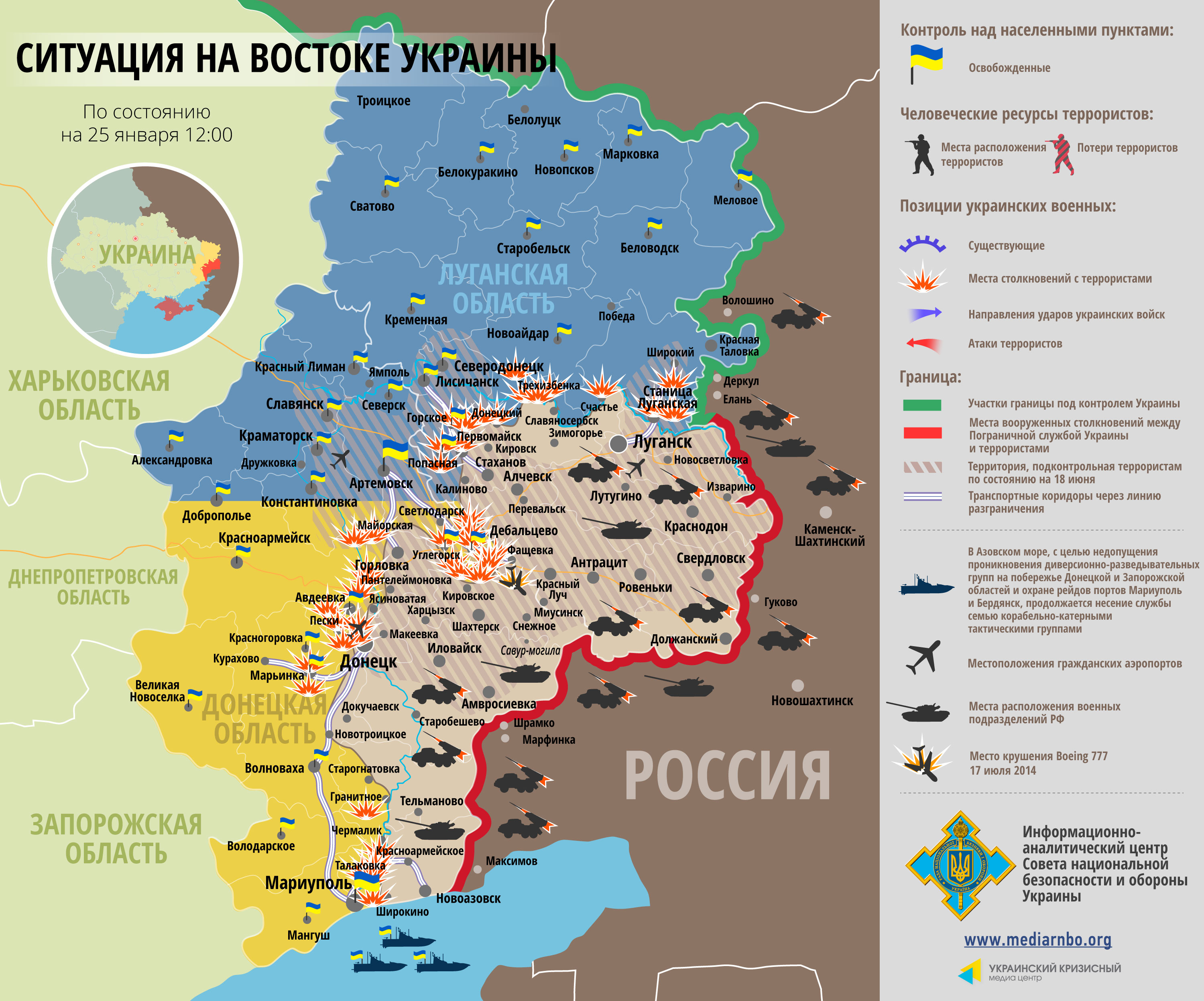 Всего в период с 17 по 24 января силы АТО уничтожили 805 террористов, ранили - 405.