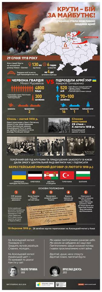 Украинский институт национальной памяти опубликовал на своей странице в Facebook инфографику с основными фактами боя под Крутами.