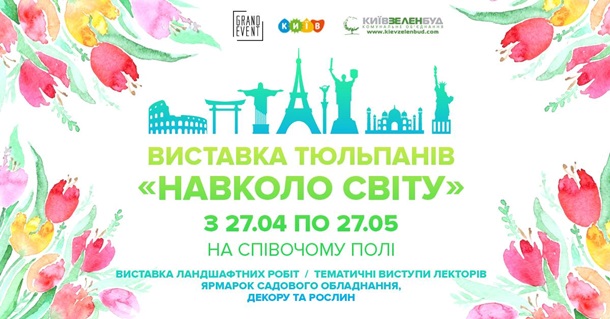Выставка тюльпанов "Вокруг света" начинает свою работу 27 апреля и будет работать в течение месяца. Организаторы мероприятия обещают уникальные инсталляции мирового уровня. Почти 4 тыс. квадратных метров Печерского ландшафтного парка украсят цветочными композициями. На Певчем поле также будут работать: тюбинг-горки, веревочный парк, выставки, ярмарка хендмейда.