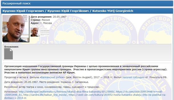 Актер Куценко попал в базу Миротворца