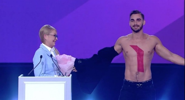 Во время форума, на котором представлялся «новый курс», к Тимошенко на сцену вышел молодой парень — снял футболку, подержал лидера Батьківщини за руку и подарил цветы. Зачем это было сделано, мало кто понял. Так пытаются показать, что Юлия Владимировна еще очень даже ничего и все еще завораживает мужские сердца? Но эффект от этого хода был получен — количество упоминаний форума в социальных сетях и онлайн-СМИ за считанные минуты выросло в десятки раз.