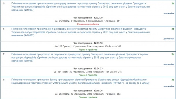 “Геращенко голосовала за проект закона об одобрении решения президента о допуске подразделений вооруженных сил других государств на территорию Украины в 2019 году для участия в многонациональных учениях (№10067)“, - отмечается в публикации.