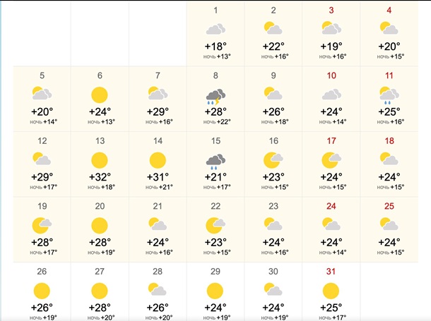 После Дня Независимости и до конца месяца в столице будет держаться примерно такая же погода.