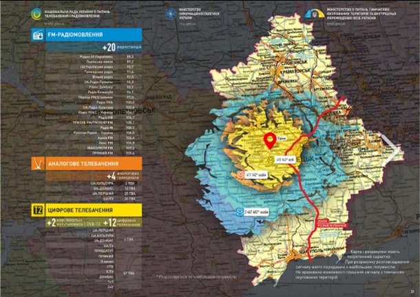 В 20 километрах от Донецка - в городе Горняк будут транслировать 20 украинских радиостанций и 16 телеканалов. Об этом вечером в понедельник, сообщил член Национального совета по вопросам телевидения и радиовещания Сергей Костинский на своей странице в Facebook.
