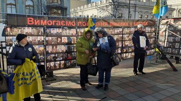 Под зданием парламента собрались сотни людей. Первую группу митингующих составили родственники погибших бойцов на Донбассе.