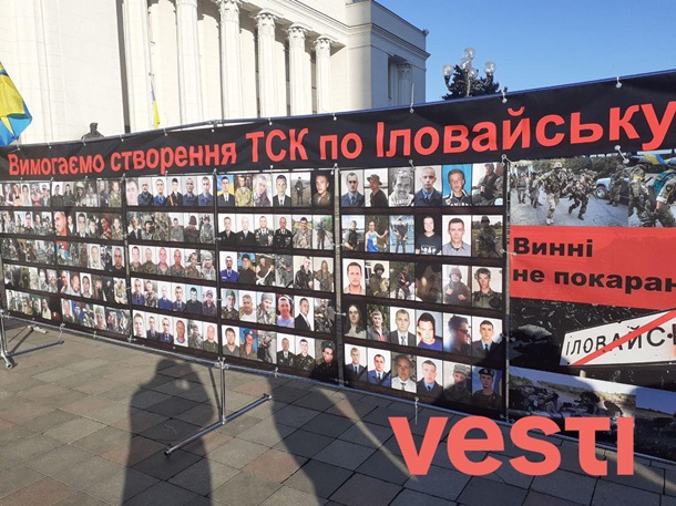 Митинг устроила организация Никто кроме нас. Под зданием парламента собралось около ста человек, они держат плакаты и снимки погибших сыновей. Протестующие требуют создать временную следственную комиссию по Иловайску.