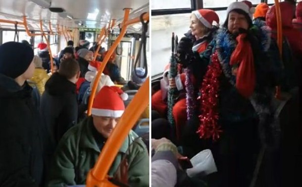 Добровольцы решили поднять жителям города новогоднее настроение, раздавая подарки на улице и в общественном транспорте.