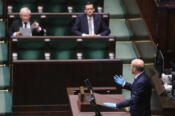 Сначала депутаты польского Сейма отказались внести в повестку дня вопрос заочного голосования на президентских выборах. А тот же Ярослав Говин подал в отставку с поста вице-премьера из-за несогласия с намерением властей проводить выборы, несмотря на пандемию коронавируса.
