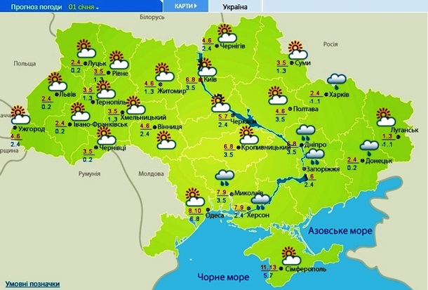 Так, в четверг, 31 декабря, осадки в виде дождя будут на западе Украины. Дневная температура воздуха в регионе составит +4...+6°. В новогоднюю ночь столбики термометров покажут до четырех градусов со знаком плюс.