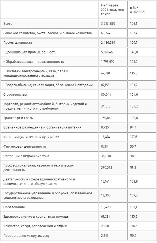 Задолженность по выплате заработной платы в Украине на 1 марта 2021 года: