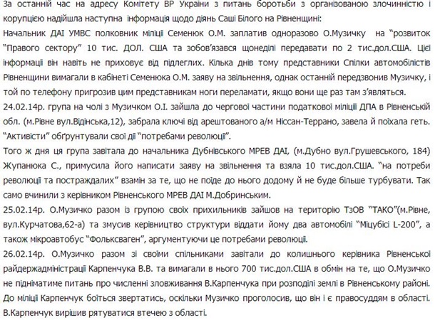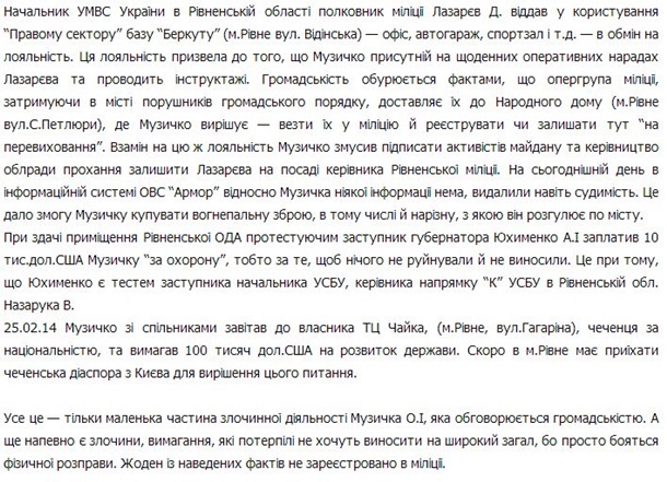 Как известно, 27 февраля, координатор Правого сектора в Западной Украине Александр Музычко ударил и словесно унизил прокурора Ровенского района Андрея Таргония.