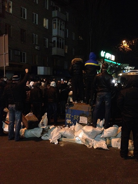 "В работников милиции и СБУ бросались различные предметы. В настоящее время задержаны 12 человек, их посадили в автозаки и пытаются вывезти, а все остальные митингующие заблокировали авто", - рассказали в пресс-службе.