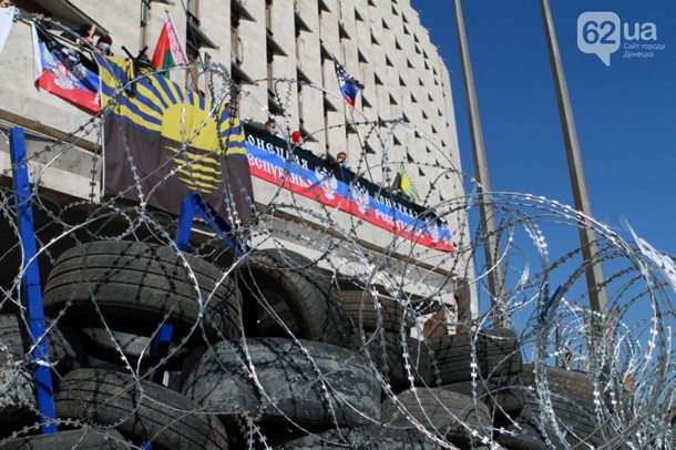 9:25 Донецкие митингующие продолжают удерживать здание местной ОГА.