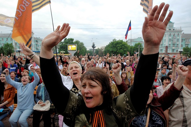 Тем временем рядовые жители Восточной Украины переживали резкий всплеск военного патриотизма. Несмотря на рекомендацию Киева отказаться от демонстраций, практически в каждом городе Донбасса состоялся свой парад Победы. Причем людей на улицы вышло гораздо больше, чем год назад и даже чем при СССР.