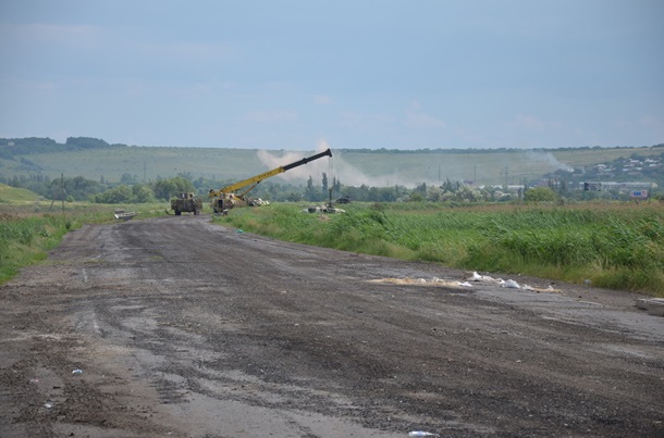 Украинские военные вывезли из Славянска сбитый вертолет Ми-24