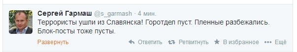 По словам же главного редактора донецкого издания ОстроВ Сергея Гармаша, все "ополченцы" ушли из Славянска.