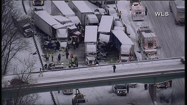 В четверг, 23 января, крупное ДТП случилось на одной из скоростных трасс США - неподалеку от города Мичиган-Сити (штат Индиана). Там столкнулись сразу 30 машин – 15 трейлеров-прицепов и столько же легковых автомобилей.